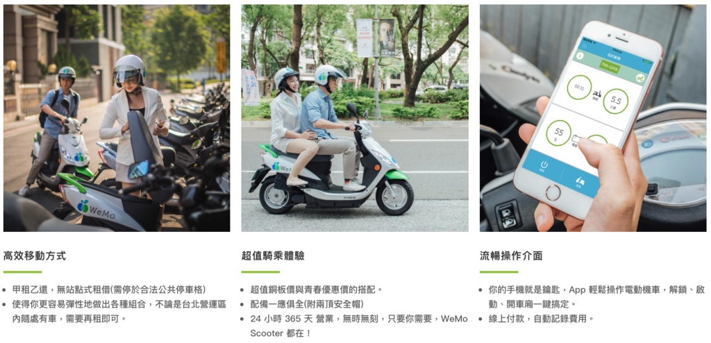 但目前營運範圍主要在台北市,希望未來能夠擴展到更多城市呀!(不過我覺得這個還是要建構在完整的大眾運輸系統之下,因為是圖一個短程的方便,如果是在其他城市沒有機車=沒有腳的話,就算再多WeMo好像還是很不方便